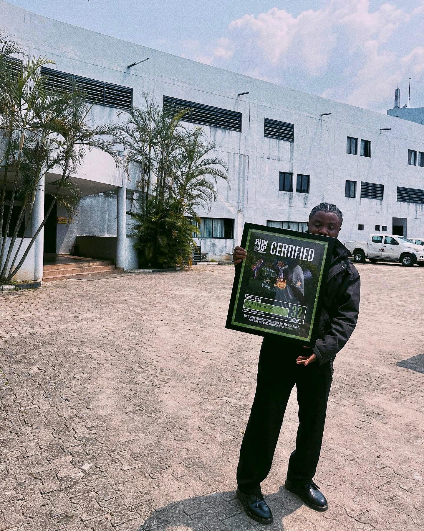 On February 6th, 2025, Mr. China Acheru presented Graeye with the Avant-Garde Sonic Star plaque, an accolade that signifies those who began as supporters and have played a key role in scaling the Run It Up! PH potential. The plaque was awarded for his impressive 32-week streak on the City Choice Playlist, a widely respected chart that spotlights standout tracks from emerging artists and voted for weekly by the audience. This milestone highlights his consistency, community engagement, and ability to connect with listeners.